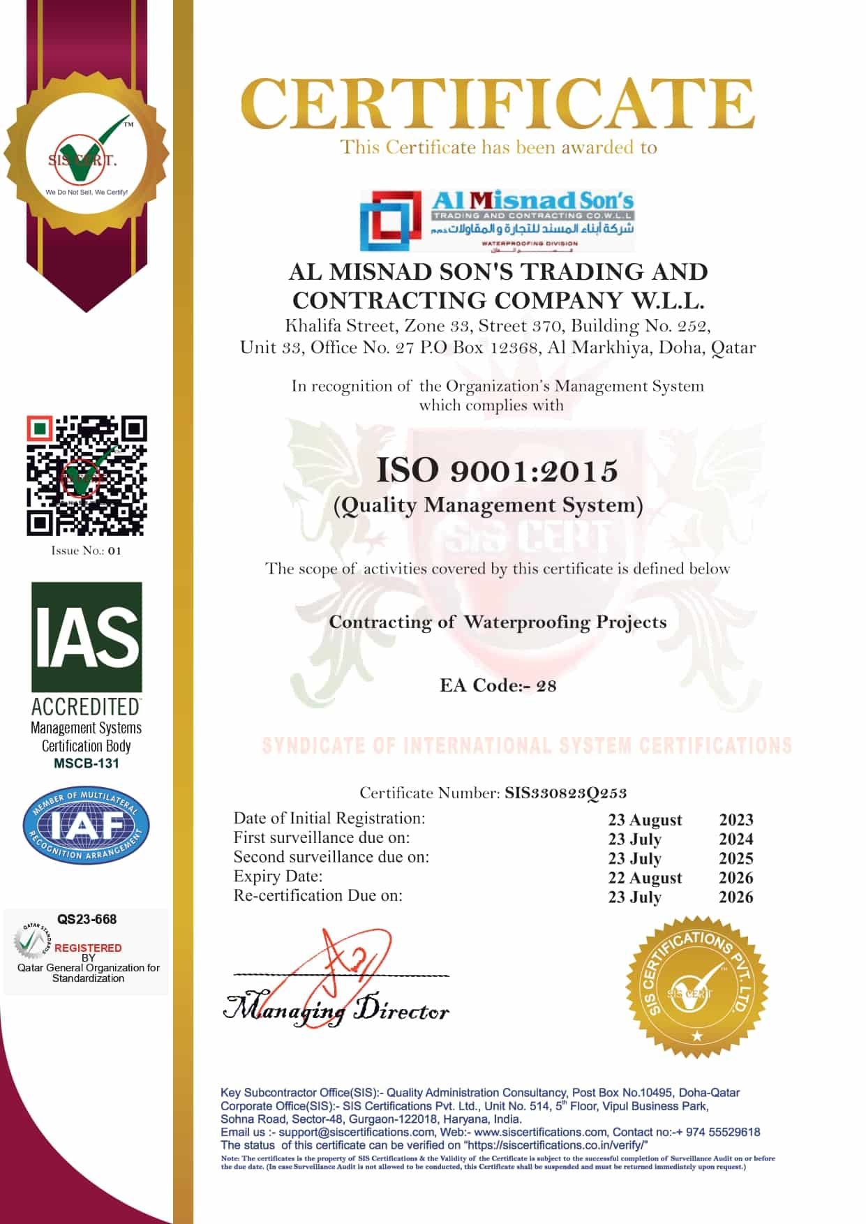 In Al Misnad Son’s Trading and Contracting Company W.L.L, we are committed to providing customers with a service of the highest possible level of quality. In order to achieve this, we are continually improving our processes and services, meeting and exceeding customer satisfaction at all times.